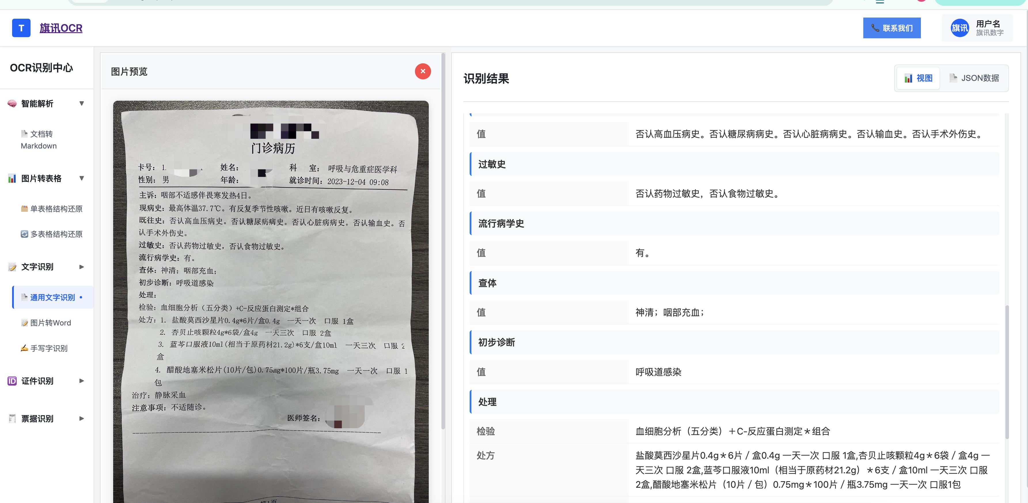 应用:识别门诊病历表格、检验报告单,结构化后自动同步至电子病历(EMR)系统,关键数据(如诊断结果、用药剂量)实时校验。