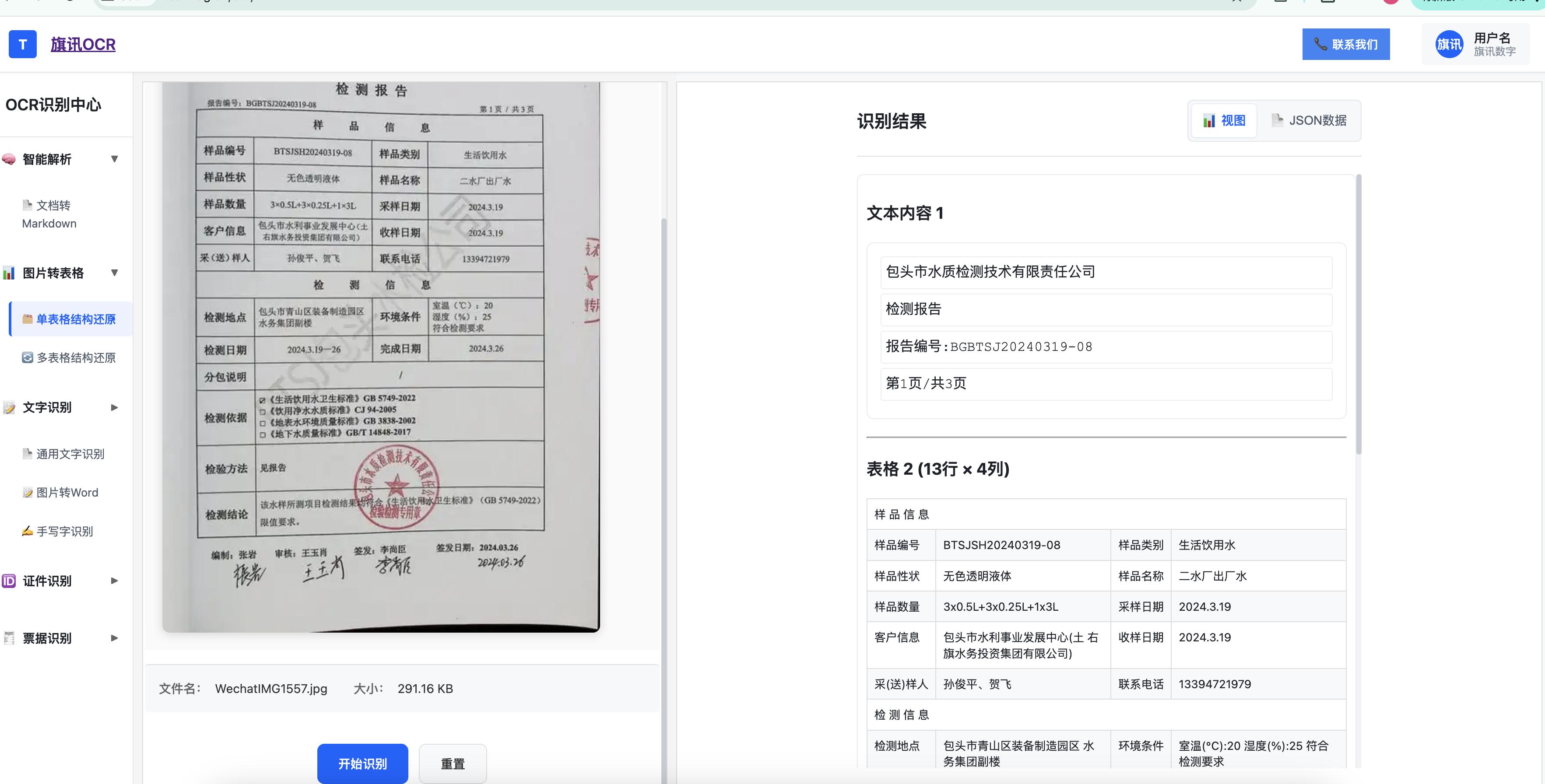 应用:识别检测报告表格,结构化后自动匹配参数标准值,生成标准化报告并同步至监管平台。