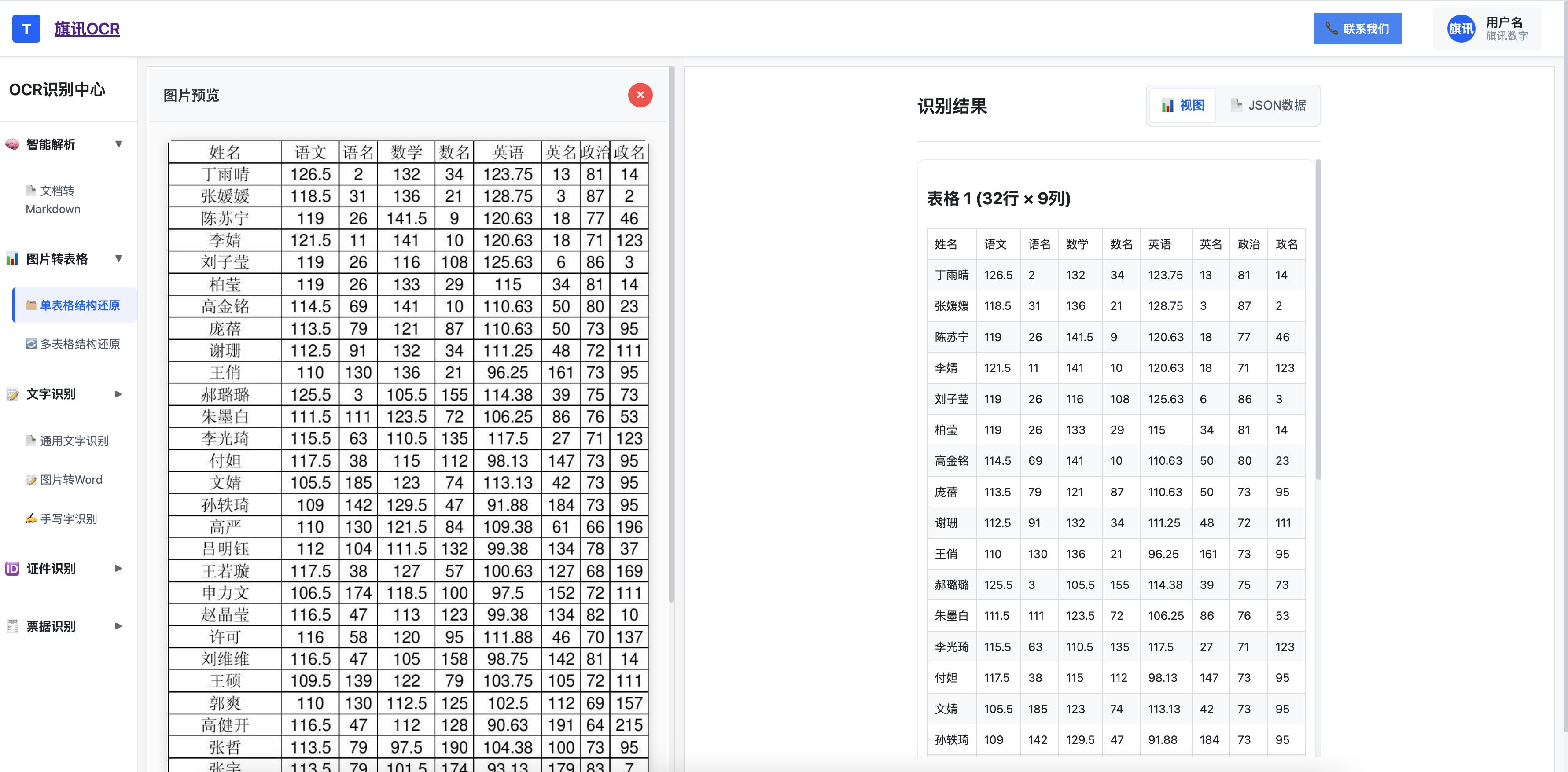 在数字化办公浪潮中,表格作为数据存储与传递的核心载体,广泛应用于金融报表、政务档案、医疗单据、教育台账等全行业场景。但传统表格处理依赖人工录入,不仅效率低下(一份复杂表格往往需数小时核对),还易因人为操作产生错漏,成为数据流转的 “堵点”。旗讯 OCR 以 “精准识别 + 智能结构化” 双引擎,彻底重构表格数据处理流程,让海量表格数据快速从 “纸质 / 图片态” 转化为 “可编辑 / 可分析态”,适配医疗、基金、检测等多行业需求。