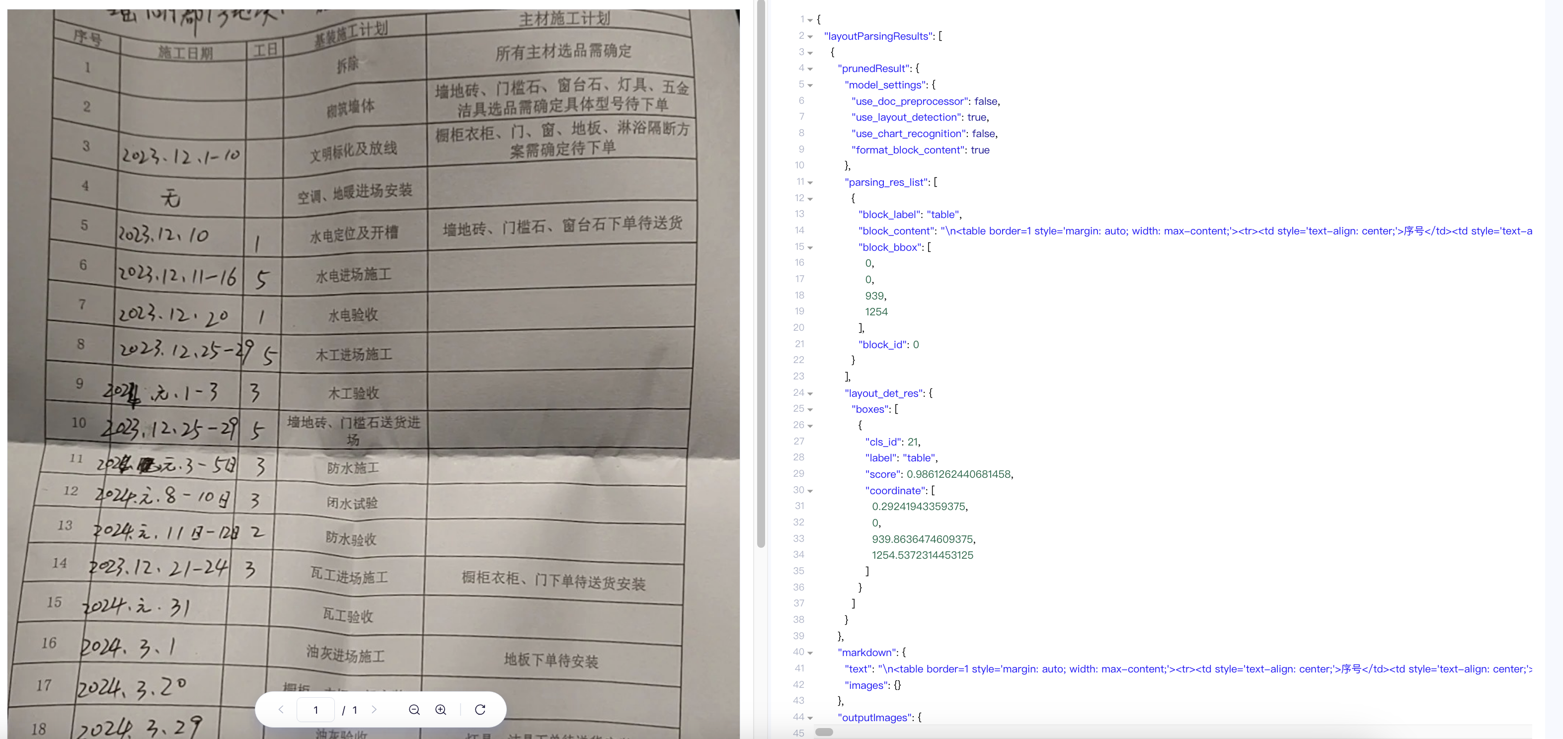 某装配式建筑项目,施工计划表含 “构件进场时间、吊装工序、人员安排” 等复杂字段,人工录入易出现时间错配。使用旗讯 OCR 后: