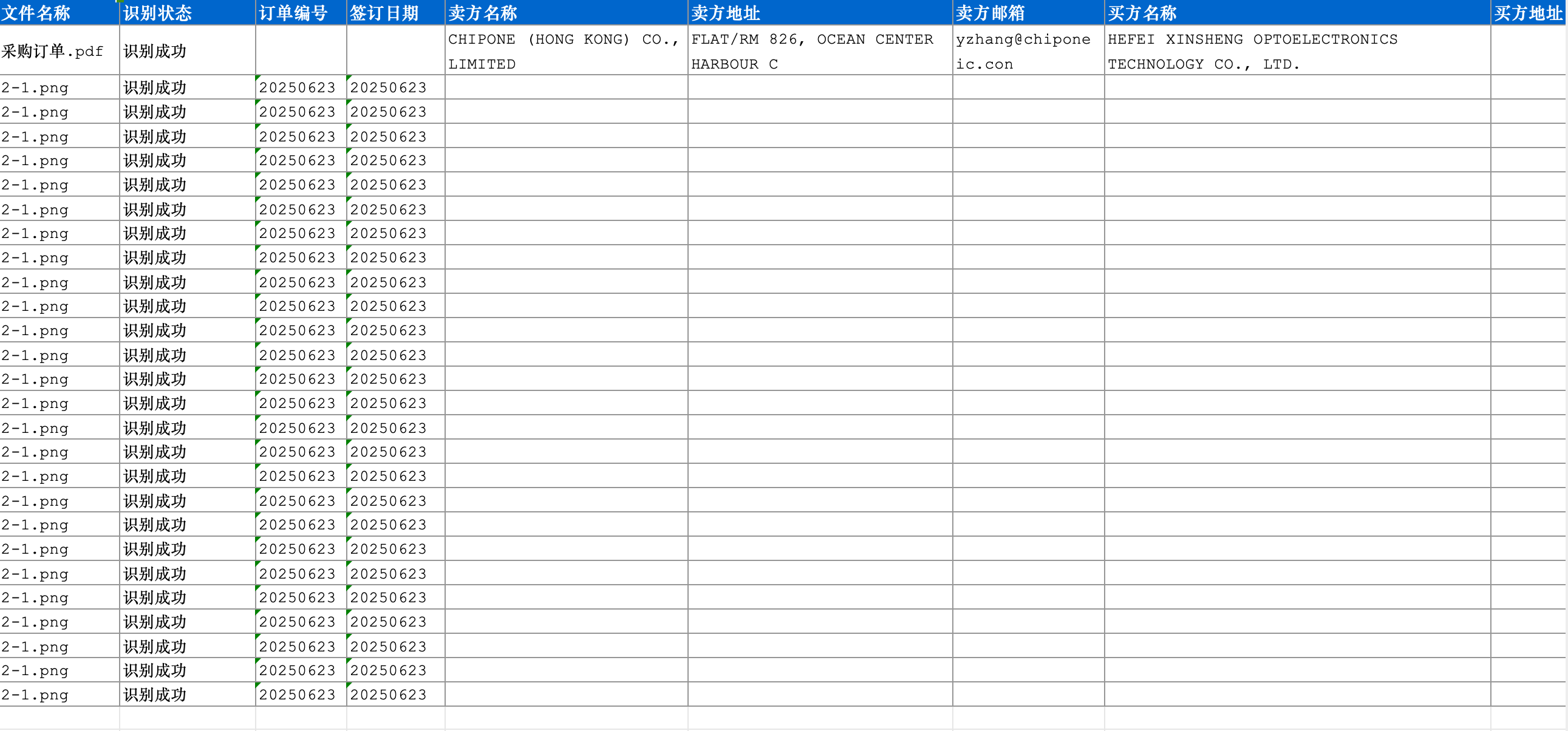 旗讯 OCR 最终实现数据的结构化呈现与无缝应用,自动生成标准化汇总表格,支持多场景导出与系统对接: