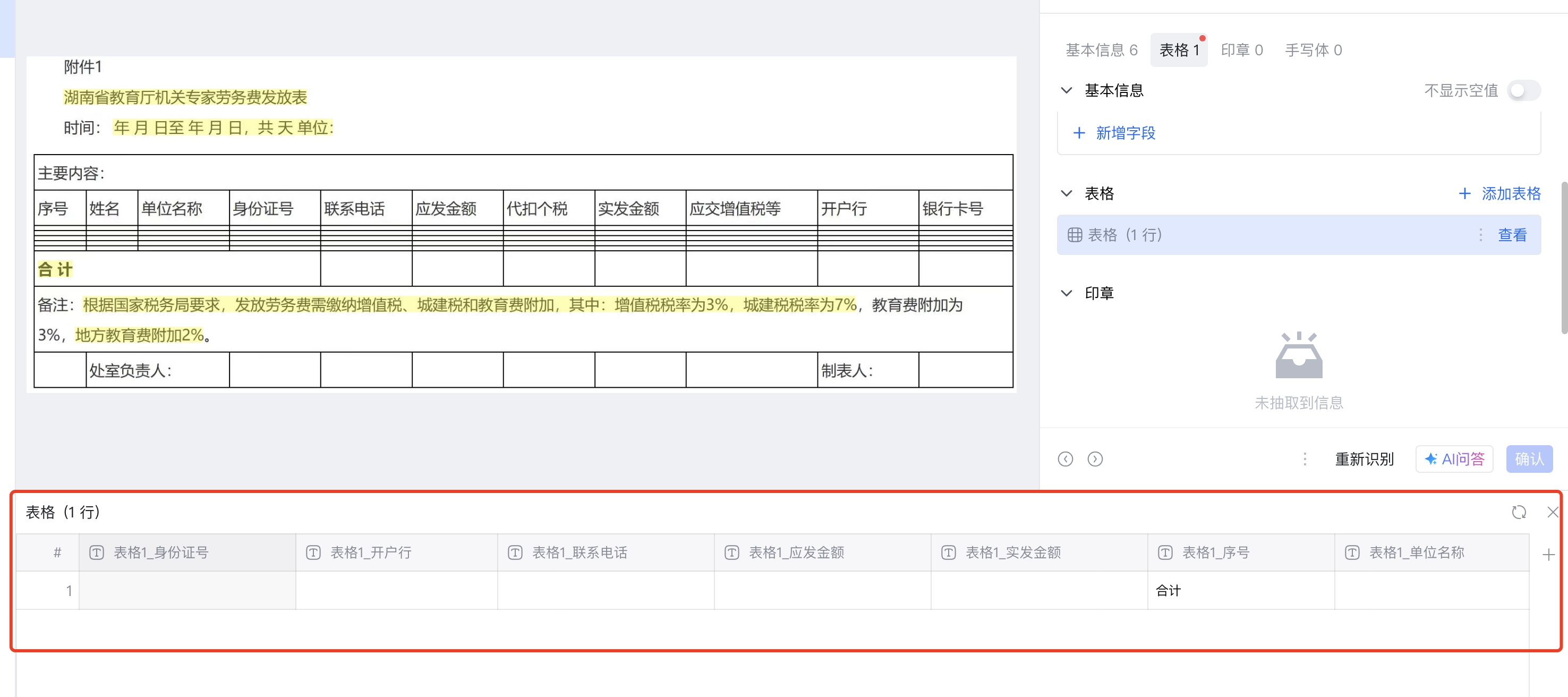 人力资源场景:企业招聘旺季的手写入职登记表、员工考勤表、请假申请单、加班审批单等,涉及大量员工信息与考勤数据,人工录入易出错且难以快速整合。旗讯 OCR 可抽取员工姓名、岗位、入职日期、考勤天数、请假天数、加班时长等信息,生成员工信息汇总表、考勤统计报表、薪资核算基础数据表格,无缝对接企业 HR 系统,实现员工数据的自动化管理,提升人力资源部门的工作效率与数据准确性;