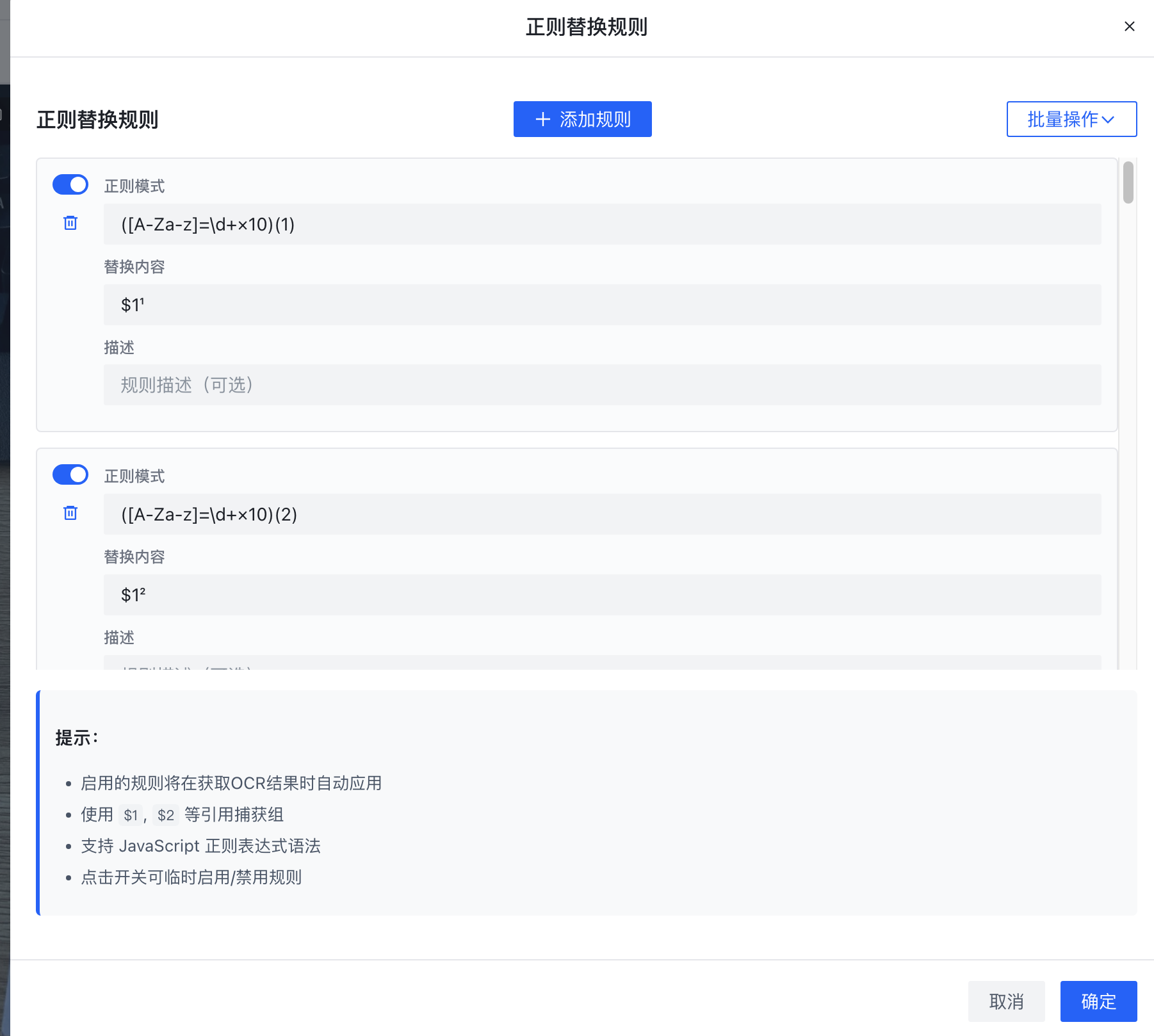 考虑到各行业文档存在专业单位、公式符号、生僻字等个性化需求,旗讯OCR提供可自定义的识别规则配置功能,实现从“识别字符”到“规范内容”的升级。