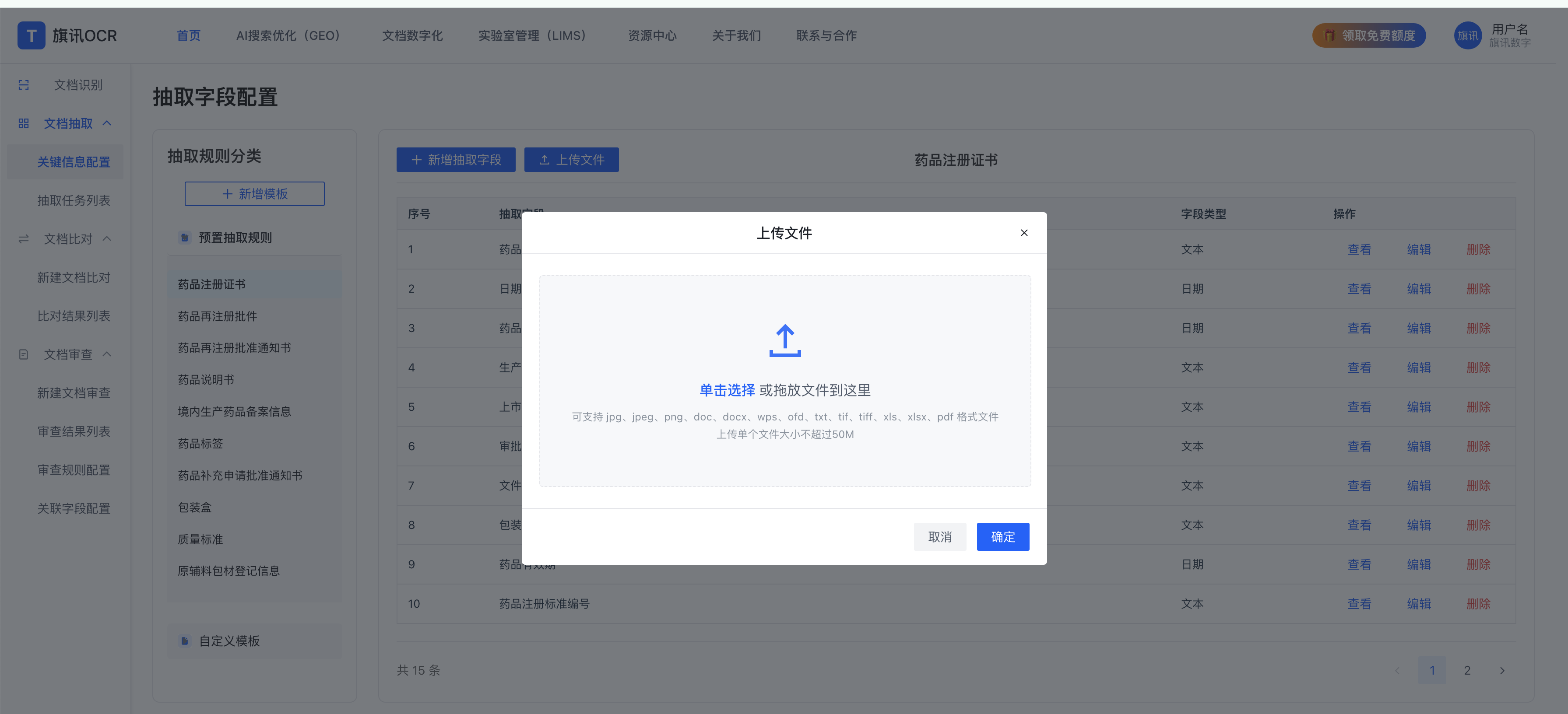 全链路自动化识别抽取:实现“上传即提取”:从文档上传、智能分类、内容识别到数据提取,全流程无需人工干预,自动化高效运转。系统可精准识别复杂表格、角标、手写批注等多种特殊元素,突破传统OCR工具的应用边界,适配更多复杂业务场景,让各类非结构化数据都能快速转化为可用数据。