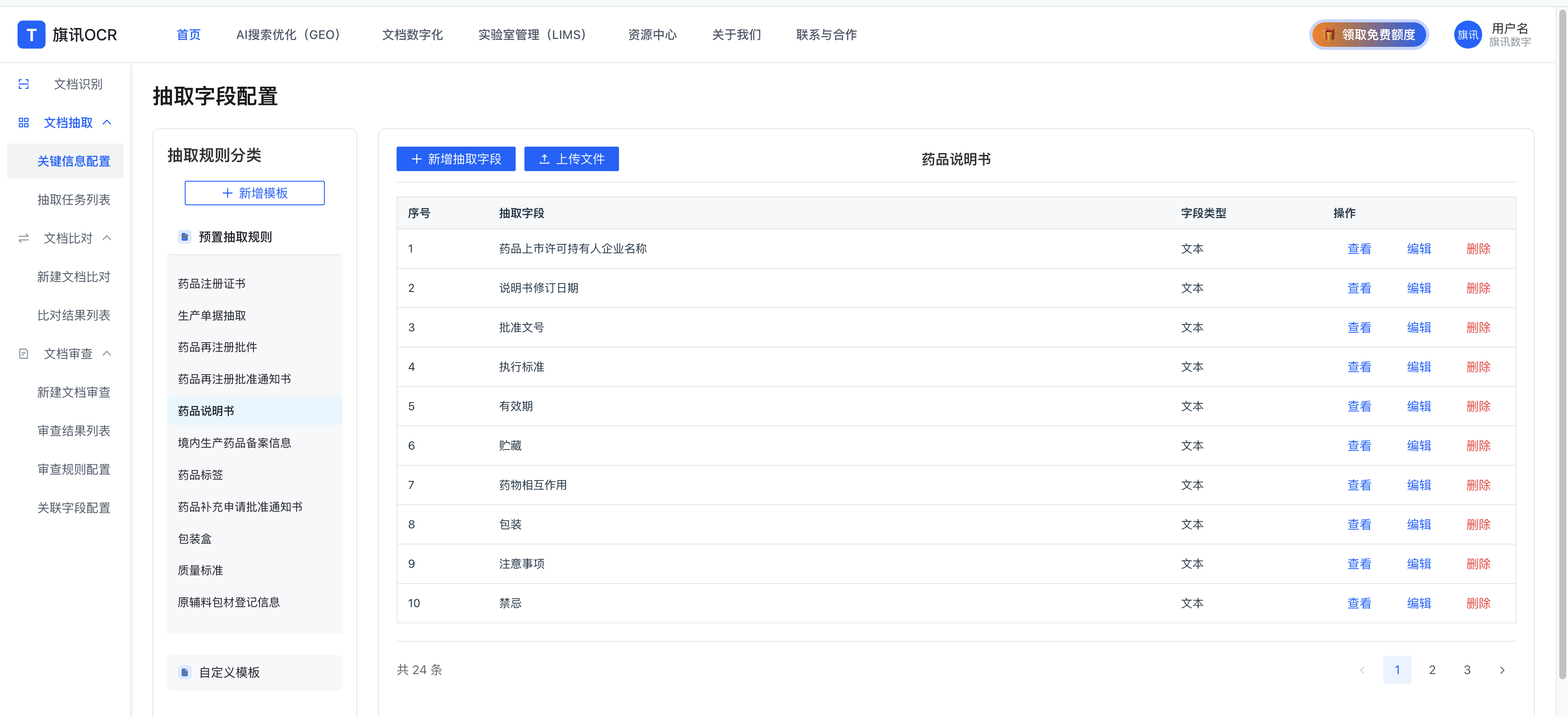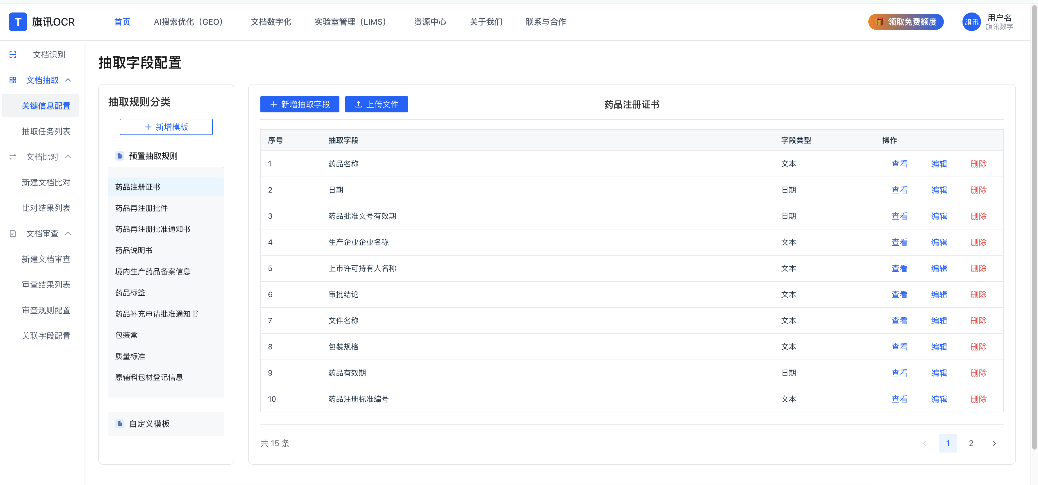 丰富的行业模板库:免费提供50+行业专属抽取模板,覆盖10+主流行业的常见数据结构化需求,企业可直接复用、快速上手,无需从零配置,大幅降低开发成本与使用门槛。
